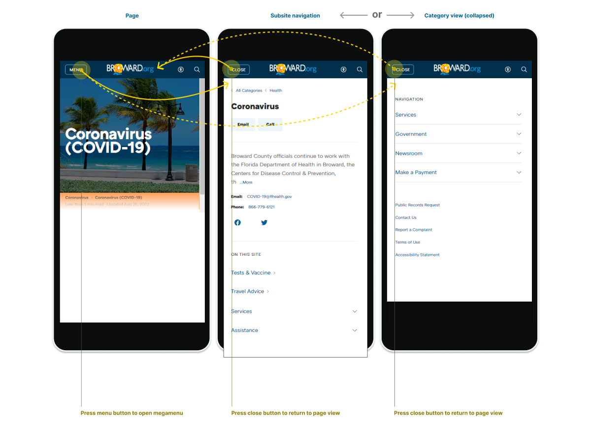 - Click/tap the breadcrumb link to go to a subcategory or all categories view or click/tap a link to a page or subsite in the On this site section to navigate within the subsite you are on or