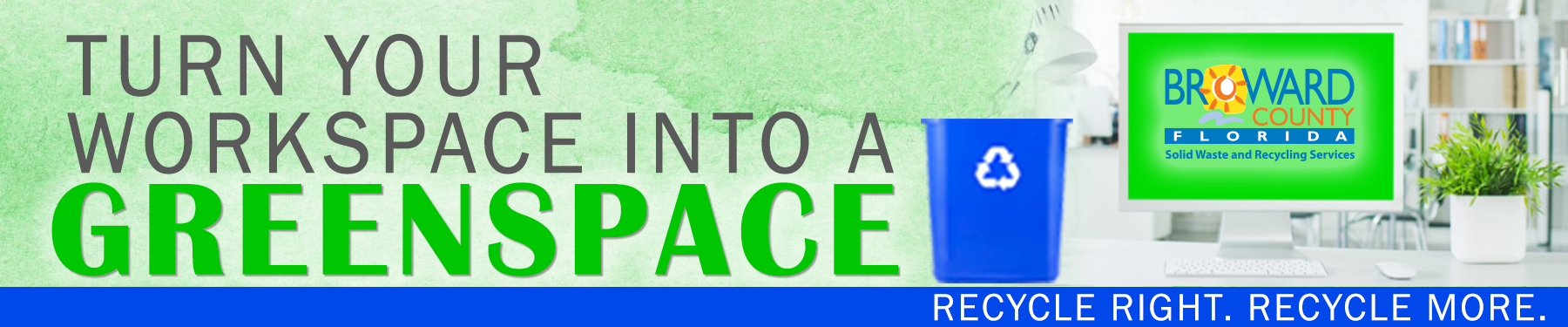 Contact the Government Offices Recycling Program coordinator at 954-474-1867 or send us an email at BCGovtRecycles@broward.org to request recycling bins* and/or a workplace assessment.